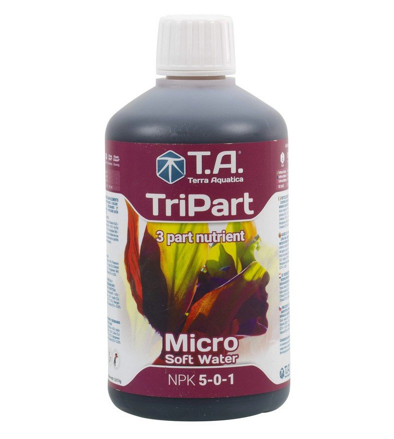 TriPart® Micro: Disponible en composición para agua dura o blanda, TriPart® Micro es la base del sistema de “bloque de componentes”, que provee los micro y sub-micronutrientes y algunos macronutrientes complementarios. Utilice TriPart® Micro siguiendo las instrucciones durante todo el proceso de crecimiento y floración.